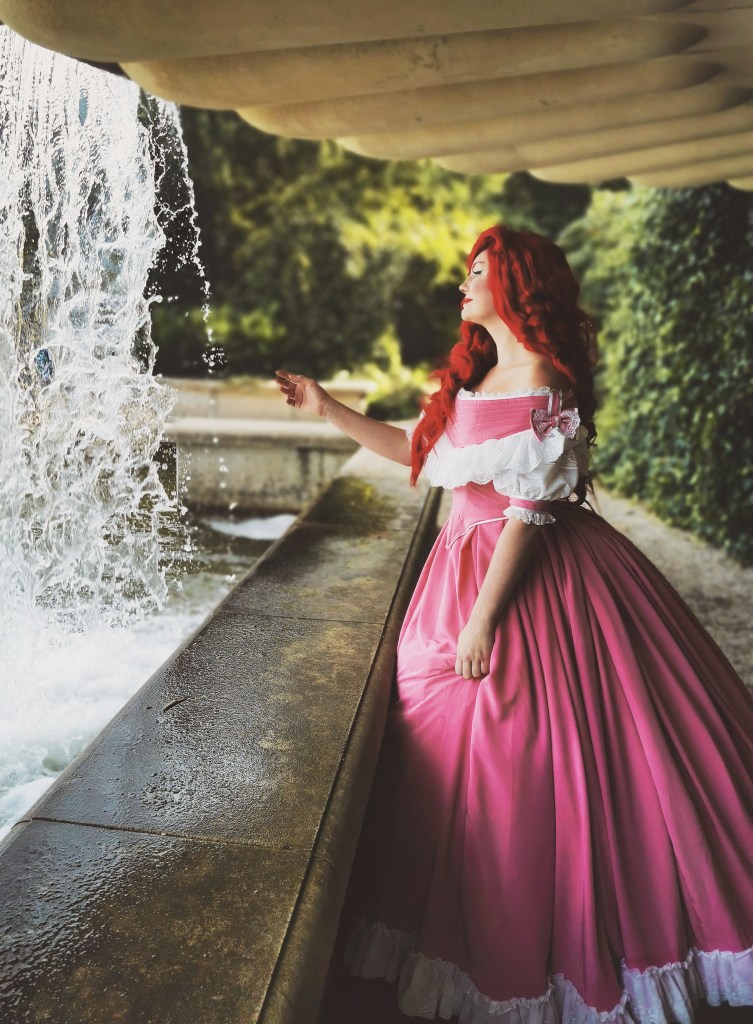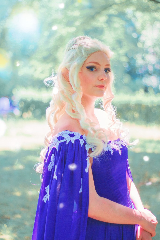 I’ve made myself several fantasy costumes that were completely designed by me, as well as designs based on characters that were already created. The costume on the left of my own version of Elsa’s Spirit Gown from Frozen 2.