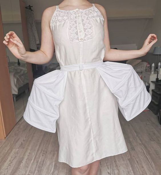 The materials I used are cotton, linnen and silk and I am so proud of these! They’re definitely an eyecatcher and I learned so much from sewing them by hand.